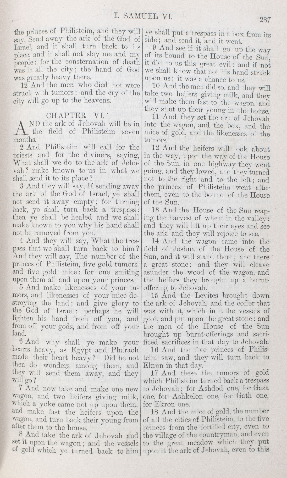 In her preface to the present volume, Smith states: "It may seem presumptuous for an ordinary woman with no particular advantages of education to translate and publish alone, the most wonderful book that has ever appeared in the world, and thought to be the most difficult to translate. It has occupied the time and attention of the wisest and most learned of all ages, believing, as the world has believed, that such only could give the correct rendering of the language in which the Bible was written... It may seem presumptuous for an ordinary woman with no particular advantages of education to translate and publish alone, the most wonderful book that has ever appeared in the world, and thought to be the most difficult to translate. It has occupied the time and attention of the wisest and most learned of all ages, believing, as the world has believed, that such only could give the correct rendering of the language in which the Bible was written." Smith began her translation in 1847 and finished it in 1855. In 1876, at 84 years of age, some 21 years after completing her work, she finally sought publication. The publication costs ($4,000) were personally funded by Julia and her sister Abby Smith. The 1,000 copies printed were offered for $2.50 each, but her household auction in 1884 sold about 50 remaining copies. The translation was one of only a few contemporary English translations out of the original languages available to English readers until the publication of the Revised Version in 1881–1894. This makes it an invaluable Bible for its period. The translation also appears to have been banned in its history, likely due to the translator being a woman, and it remains a rare translation.