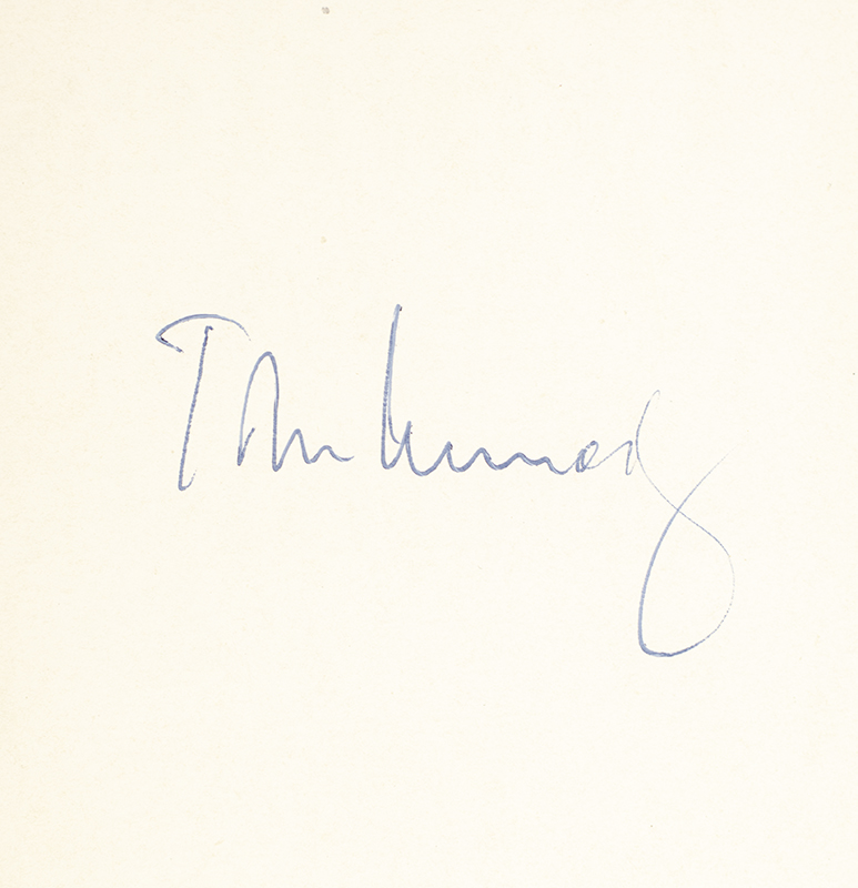Cardinal edition of Kennedy’s Pulitzer Prize-winning work; the Honey Fitz Presidential Yacht Copy; signed by John F. Kennedy. Octavo, original pictorial wrappers. Boldly signed by John F. Kennedy on the verso of the front panel. Accompanied by a photograph album of various locations within the yacht. Housed in a custom clamshell box. An exceptional example with provenance.