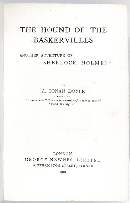 “The world is full of obvious things which nobody by any chance ever observes": First Edition, First Issue of Sir Arthur Conan Doyle's The Hound of the Baskervilles with an autograph note signed by the author laid in