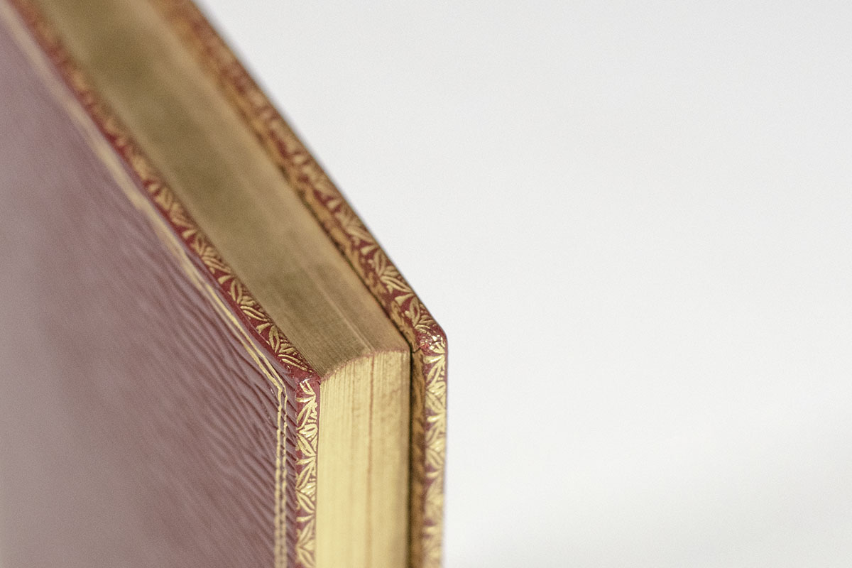 Finely bound example of Hawthorne’s tale of an early 19th-century household “solitary, declining, haunted by an ancestral curse.” Octavo, finely bound in full crushed crimson levant morocco by Bayntun-Riviere with morocco spine labels lettered in gilt, elaborate gilt tooling to the spine in six compartments within raised gilt bands, double gilt ruling to the panels with gilt turn-ins and inner dentelles, marbled endpapers, all edges gilt. In fine condition. A beautiful example.