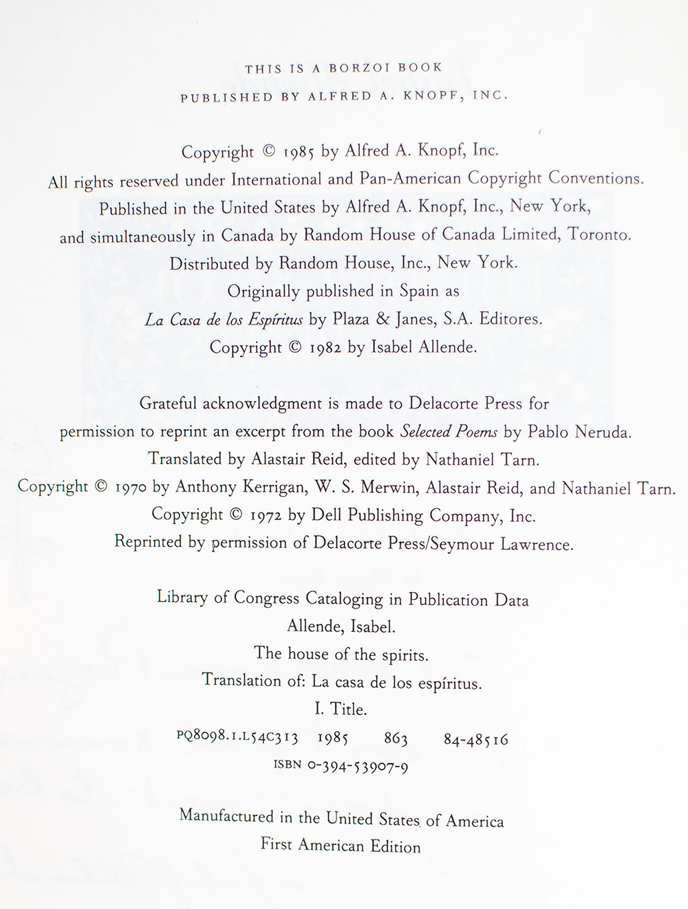 First Editions of the author's Classic The House of Spirits Trilogy; Each Signed by Isabel Allende
