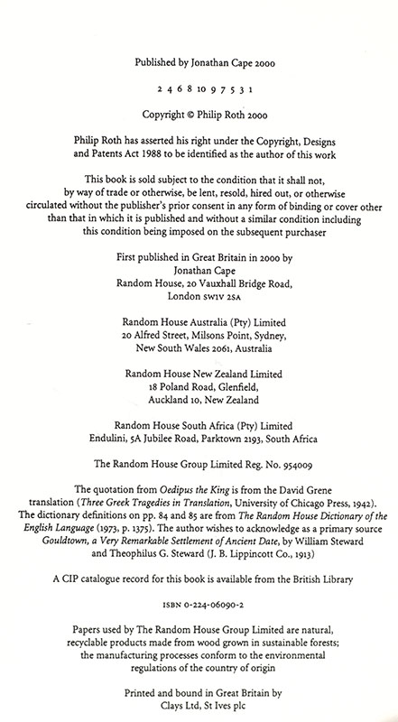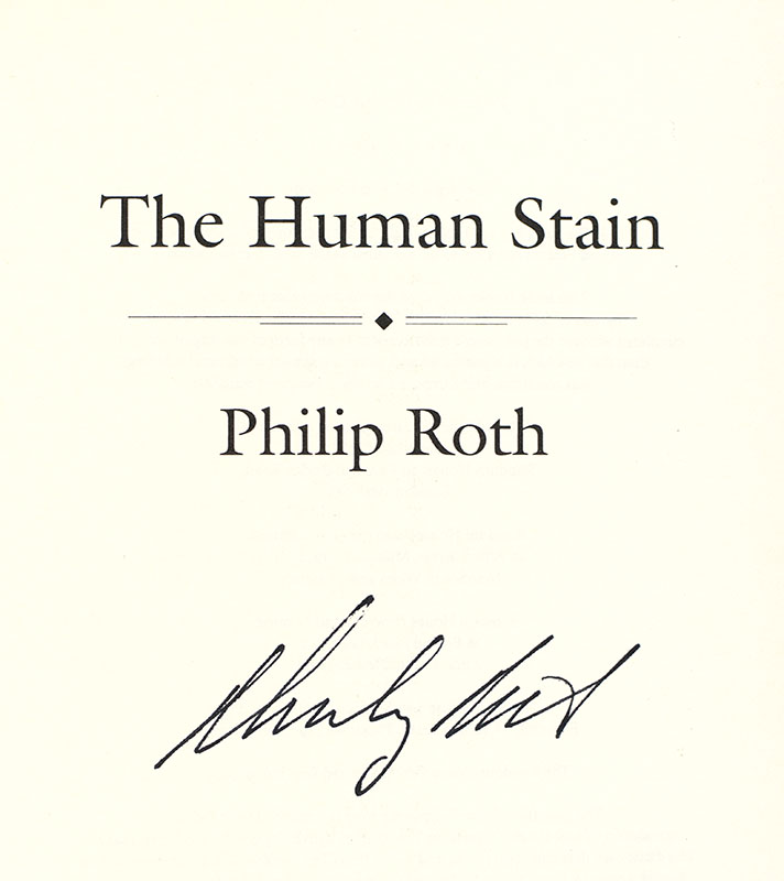 “Nothing lasts and yet nothing passes either, and nothing passes just because nothing lasts": First British Edition of The Human Stain; Signed By Philip Roth