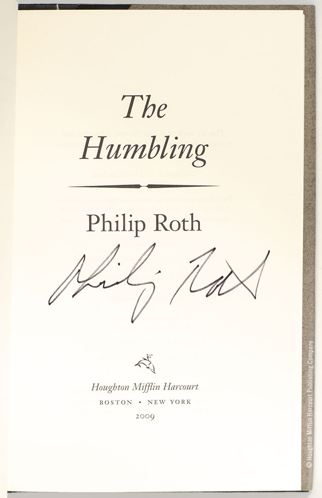 First Edition of Philip Roth's The Humbling; Signed by Him and Legendary Artist Milton Glaser