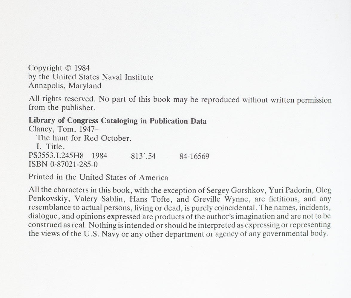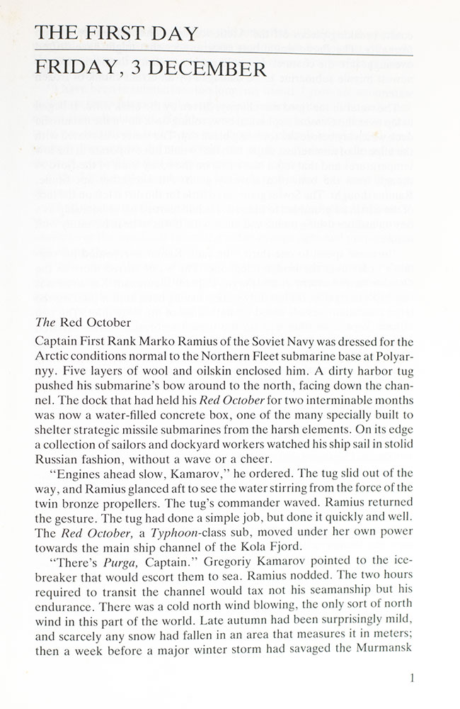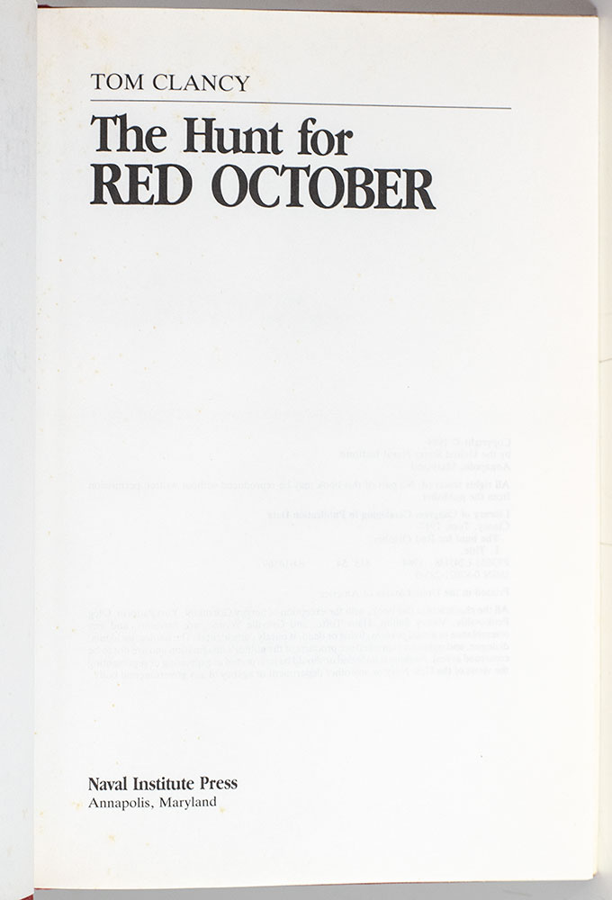 “Danger confronted properly is not something a man must fear": First Edition of Tom Clancy's The Hunt For Red October; Inscribed by Him