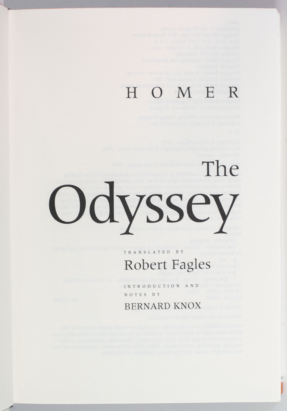 HOMER] TRANSLATED BY ROBERT FAGLES; INTRODUCTION AND NOTES BY BERNARD KNOX,.