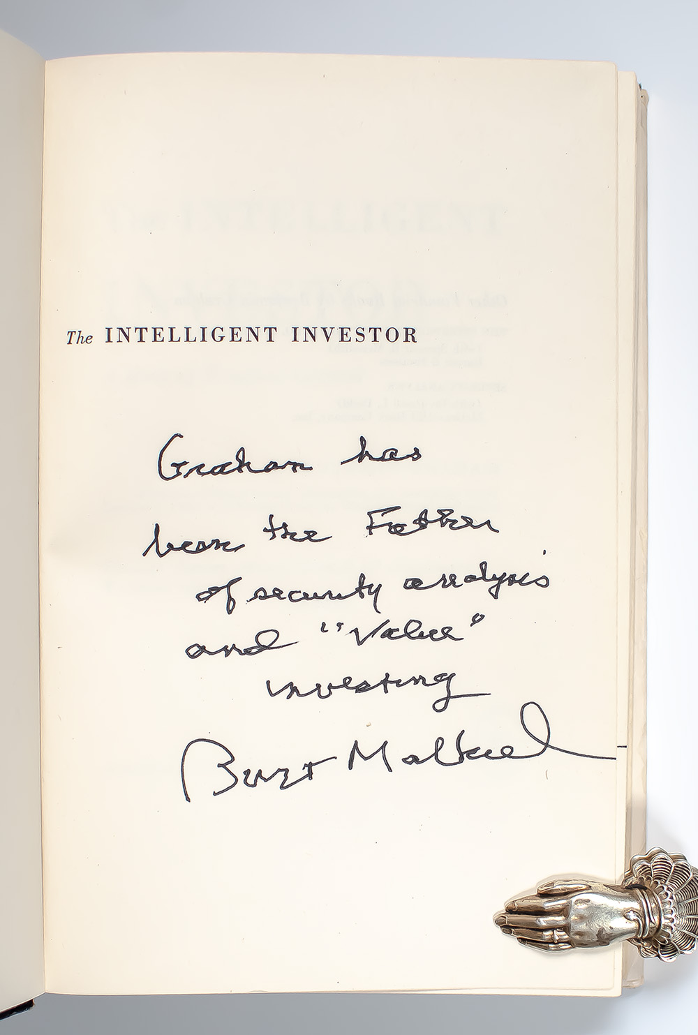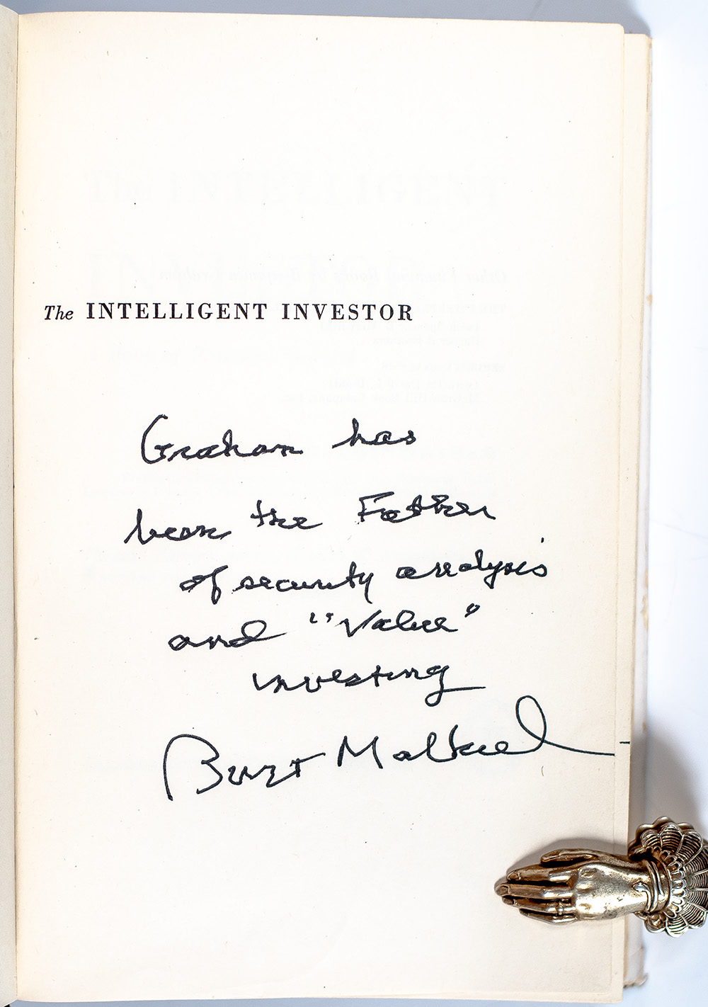 "By far the best book on investing ever written" (Warren Buffett): Rare First Edition of Benjamin Graham’s seminal work The Intelligent Investor; uniquely inscribed by Burton Malkiel