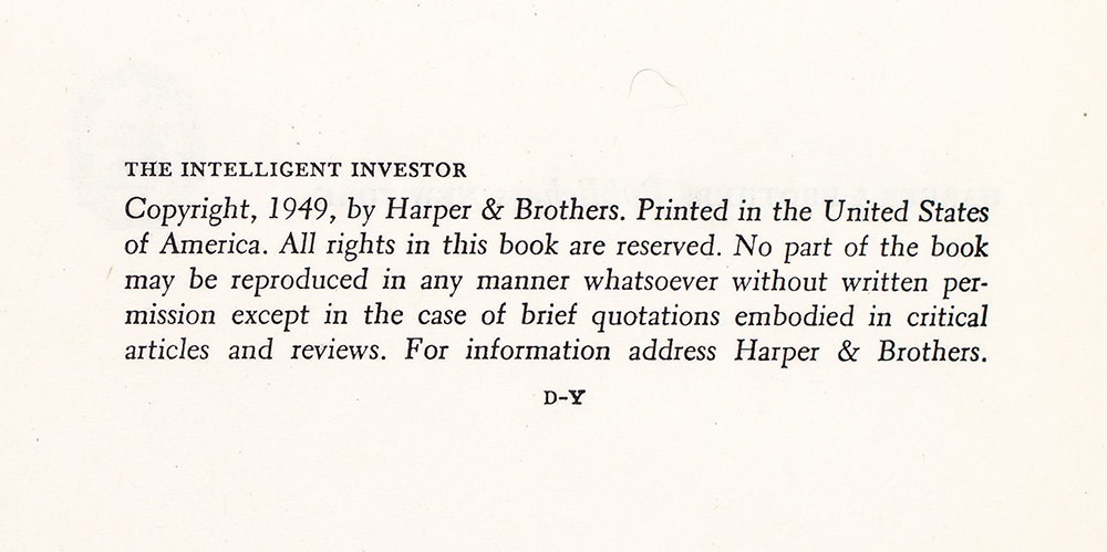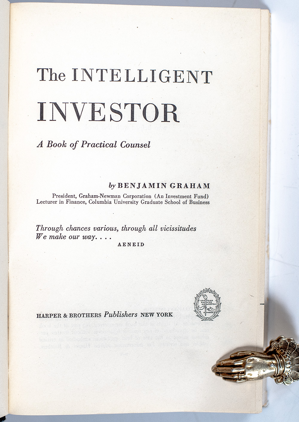 First edition of Benjamin Graham's seminal work on investing, widely regarded as one of the most influential works on value investing ever written, with the code D-Y on the copyright page. Octavo, original cloth. Near fine in a very good first-issue dust jacket with $3.50 price and "Editor of Barron’s" to the front flap. Association copy, lengthily signed by American economist Burton Malkiel on the half-title page, "Graham has been the Father of security analysis and 'value' investing Burt Malkiel." Renowned economist and author Burton Malkiel was profoundly influenced by the teachings of Benjamin Graham. Graham's principles of value investing, emphasizing fundamental analysis and a long-term perspective, shaped Malkiel's understanding of financial markets. Malkiel adopted Graham's philosophy of investing in undervalued assets with strong fundamentals, believing in the importance of thorough research and rational decision-making. Graham's emphasis on the importance of diversification and risk management also resonated with Malkiel, leading him to advocate for the efficient market hypothesis in his seminal work, "A Random Walk Down Wall Street." Malkiel's integration of Graham's principles with modern financial theory has had a profound impact on investment strategies, shaping the way investors approach the markets and manage their portfolios. Housed in a custom half morocco clamshell box by the Harcourt Bindery. First printings are rare. A very unique association copy.