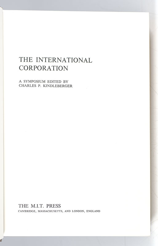 First Edition of Kindleberger's The International Corporation; Inscribed by Him to Colleague Abe Siegel