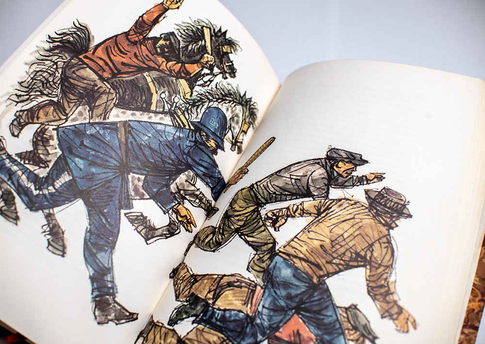 The Heritage Press edition of this classic political work. Royal octavo, bound in three-quarters morocco by Morrell with gilt titles to the spine in six compartments within raised gilt bands, top edge gilt, frontispiece, title page vignette, silk ribbon bound in, with color illustrations. In near fine condition with light sunning, rubbing, and toning. New preface by the author. Illustrated by famous illustrator Fletcher Martin. Fletcher Martin was an American painter and illustrator known for his bold, expressive style and depictions of American life, particularly scenes of labor, sport, and war. Active during the mid-20th century, Martin gained recognition for both his mural work under the Works Progress Administration and his illustrations for books and magazines, including vivid contributions to classic literary works for the Limited Editions Club.