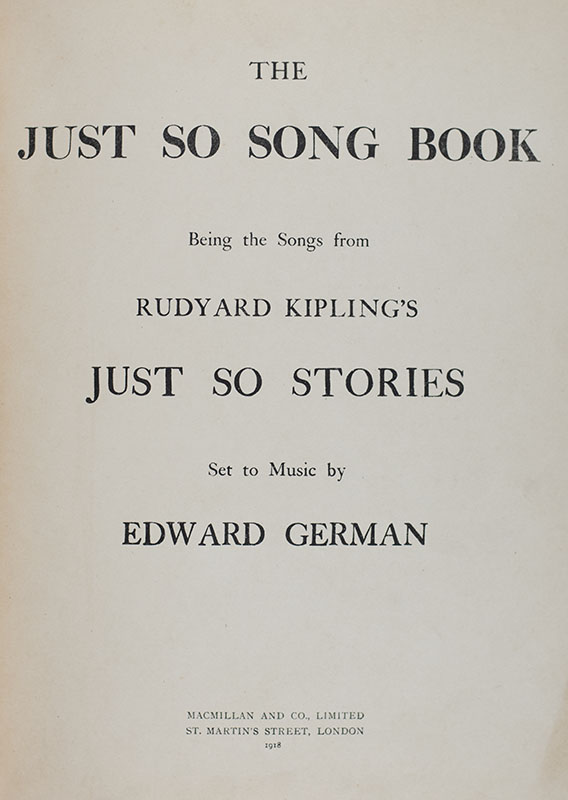 The Just So Song Book: Being Songs From Rudyard Kipling's Just So Stories. Set to Music by Edward German.