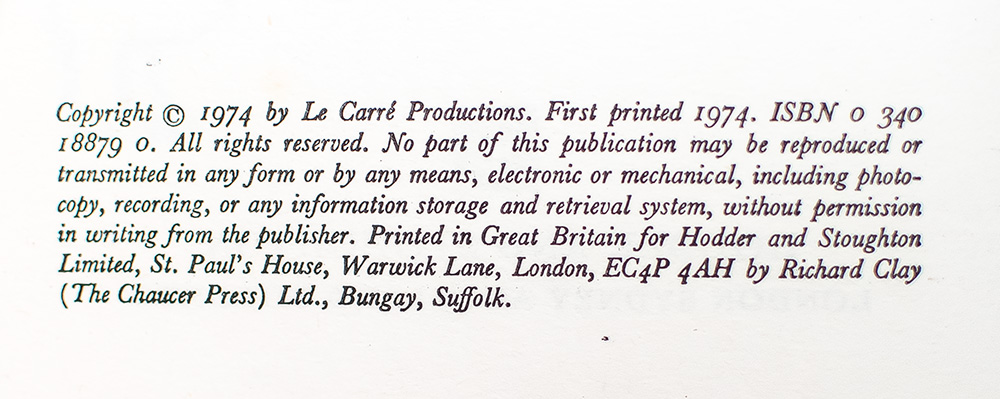 First editions of each title in the author’s acclaimed Karla Trilogy. Octavo, three volumes, original cloth. Signed by the author on a slip laid in to 'Tinker, Tailor, Soldier, Spy' and an ex libris slip adhered to the title page of 'The Honourable Schoolboy.' Each volume is near fine in a very good to near fine dust jacket.