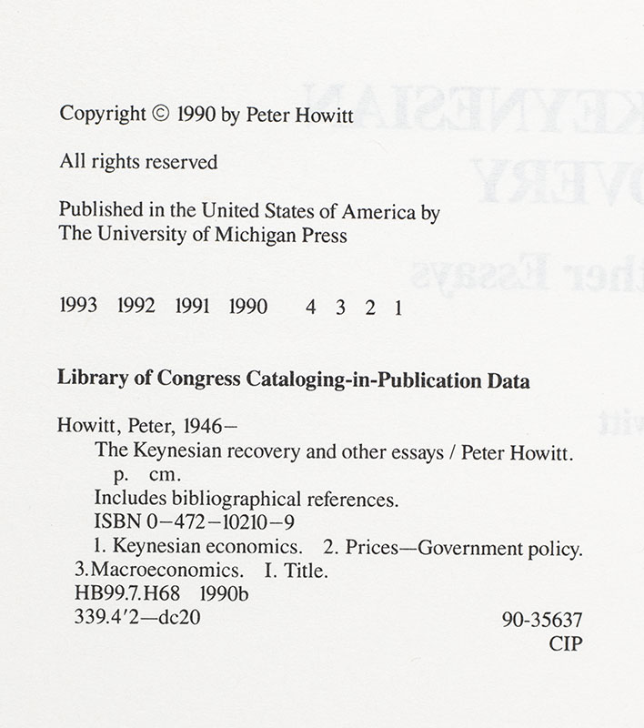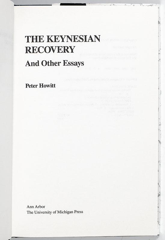 First edition of Peter Howitt's The Keynesian Recovery and Other Essays