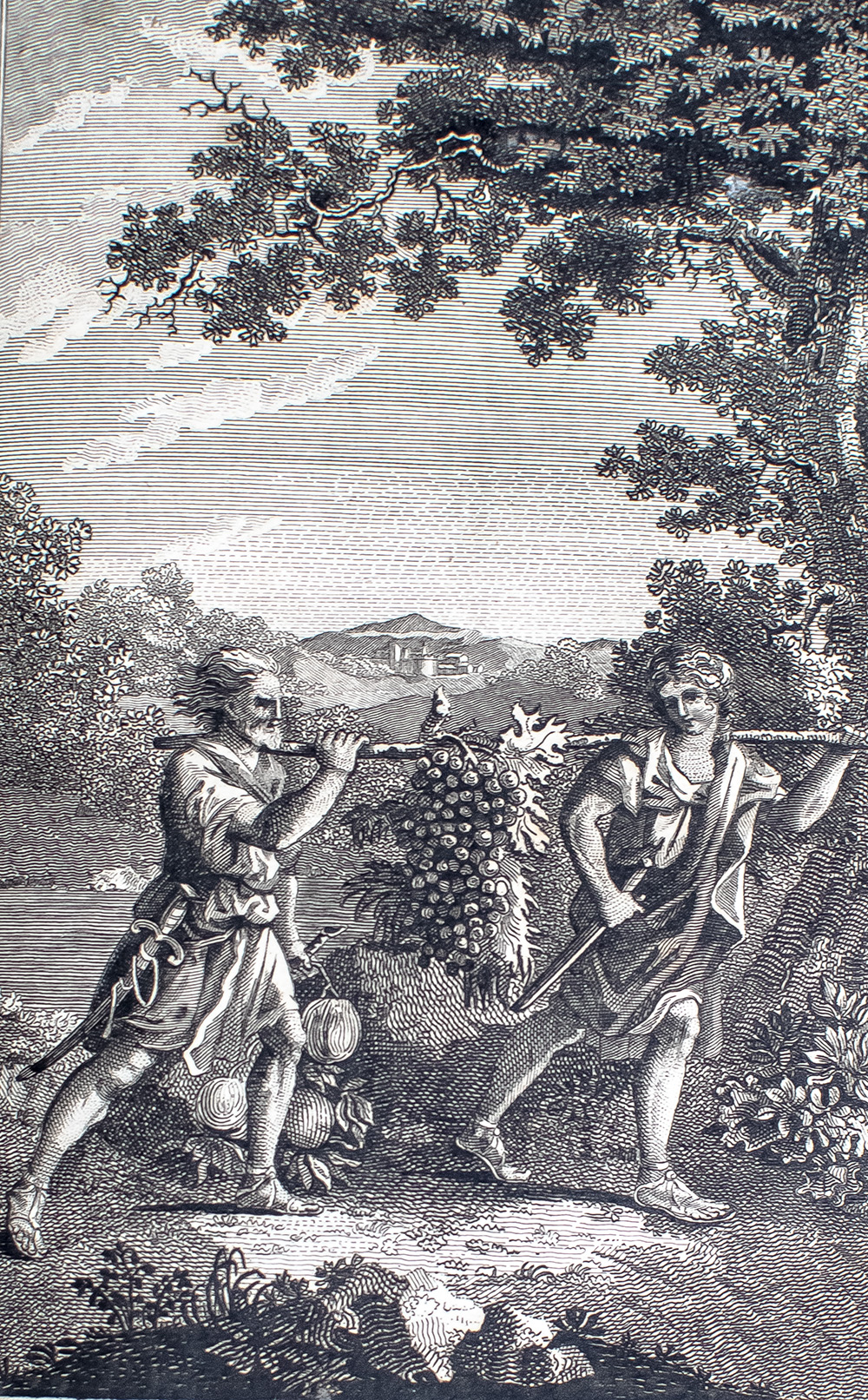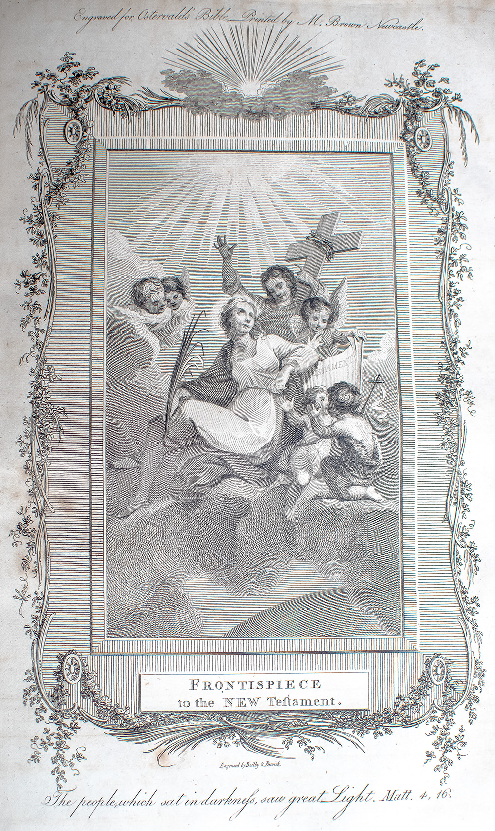 Rare 1613 folio edition of the great King James "She" Bible", "the true 1613 folio edition of King James' Bible; easily distinguishable from the other large folio editions by its smaller type... The preliminary leaves are set up as in the other large folio editions, but the text is printed in smaller type with 72 instead of 59 lines to the full column" (Herbert; Darlow & Moule). From the library of famed collector Alfred Sutro and decorated with a large fore-edge painting by John T. Beer. Folio, bound in full 19th century paneled calf rebacked with older spine labels preserved, gilt tiles and ruling to the spine in seven compartments within raised banes, gilt ruling to the front and rear panels, inner dentelles elaborately stamped in blind, marbled endpapers, text in two columns, 72 lines, black letter, titles within elaborate historiated woodcut borders featuring the twelve tribes, woodcut initials & headpieces, with the opening calendar printed in red and black, the genealogies, and apocrypha, engraved double-page map of the Holy Land by More & Speed, extra-illustrated with 43 engravings by Beilby & Bewick from Ostervald's Bible (Newcastle, 1782) bound at the appropriate chapter and verse. A4 B4 C6 D4 2A-4M6 4N4 plus A-C6 (Speed's Genealogies inserted before OT). Decorated with a large disappearing fore-edge painting by John T. Beer depicting two scenes: "Caleb's daughter pleading for a watered land" and "Christ at the Well of Sychar." With the erroneous phrase found in the first issue “and he went into the citie” in Ruth 3:15 corrected to “…she went…” Provenance: John T. Beer (1826-1903, fore-edge painting and his sale, Nov 12, 1903, lot 249 sold to William Ridler, bookseller); Alfred Sutro (1869-1945, bookplate); sold to another private collection, 1976. Exhibition: Museum and Gallery, Bob Jones University, Greenville, SC, 2016-2023. Noted collector and early President of the Book Club of California Alfred Sutro commissioned a pamphlet from the Grabhorn Press in 1938 to celebrate this volume. Darlow & Moule 249; Herbert 322; Weber Beer 29. In very good condition with corner repairs to first 15 and final 4 leaves (incl. loss of 2 letters on A2v), corner creasing and a small ink stain to OT title, map laid down and with losses along edges and of lower corners, final leaf trimmed, laid down and with loss of a few letters, front free endpaper started, gift inscription. An exceptionally rare, complete and unique example of perhaps the most influential text in the English language.