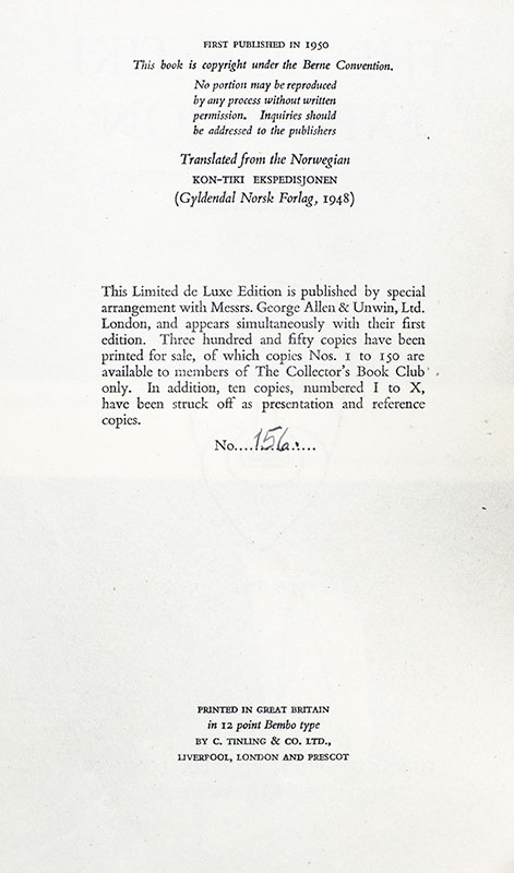 "Borders I have never seen one. But I have heard they exist in the minds of some people": Limited de luxe First Edition Of The Kon-Tiki