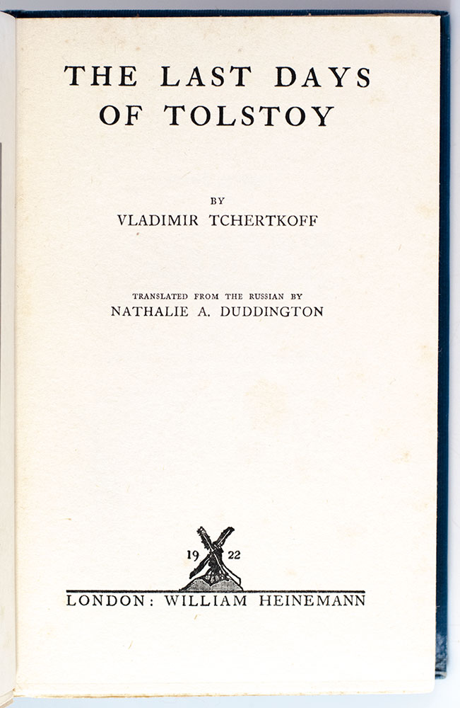 First edition of Tchertkoff's The Last Days of Tolstoy