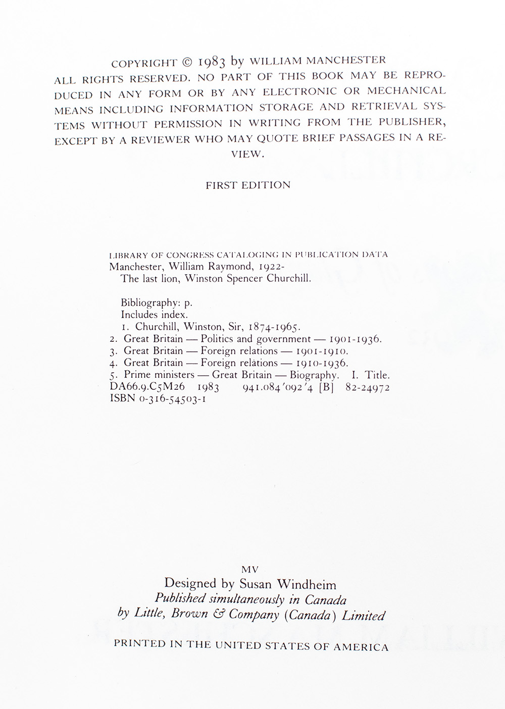 "The finest way to die is in the excitement of fighting the enemy": First edition of The Last Lion; signed by William Manchester