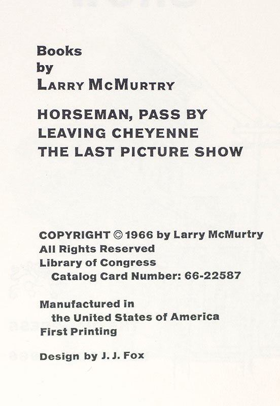 "'Because life's too damn hard here,' Lois said. 'The land's got too much power over you. Being rich here is a good way to go insane": First Edition of The Last Picture Show; Signed by Larry McMurtry