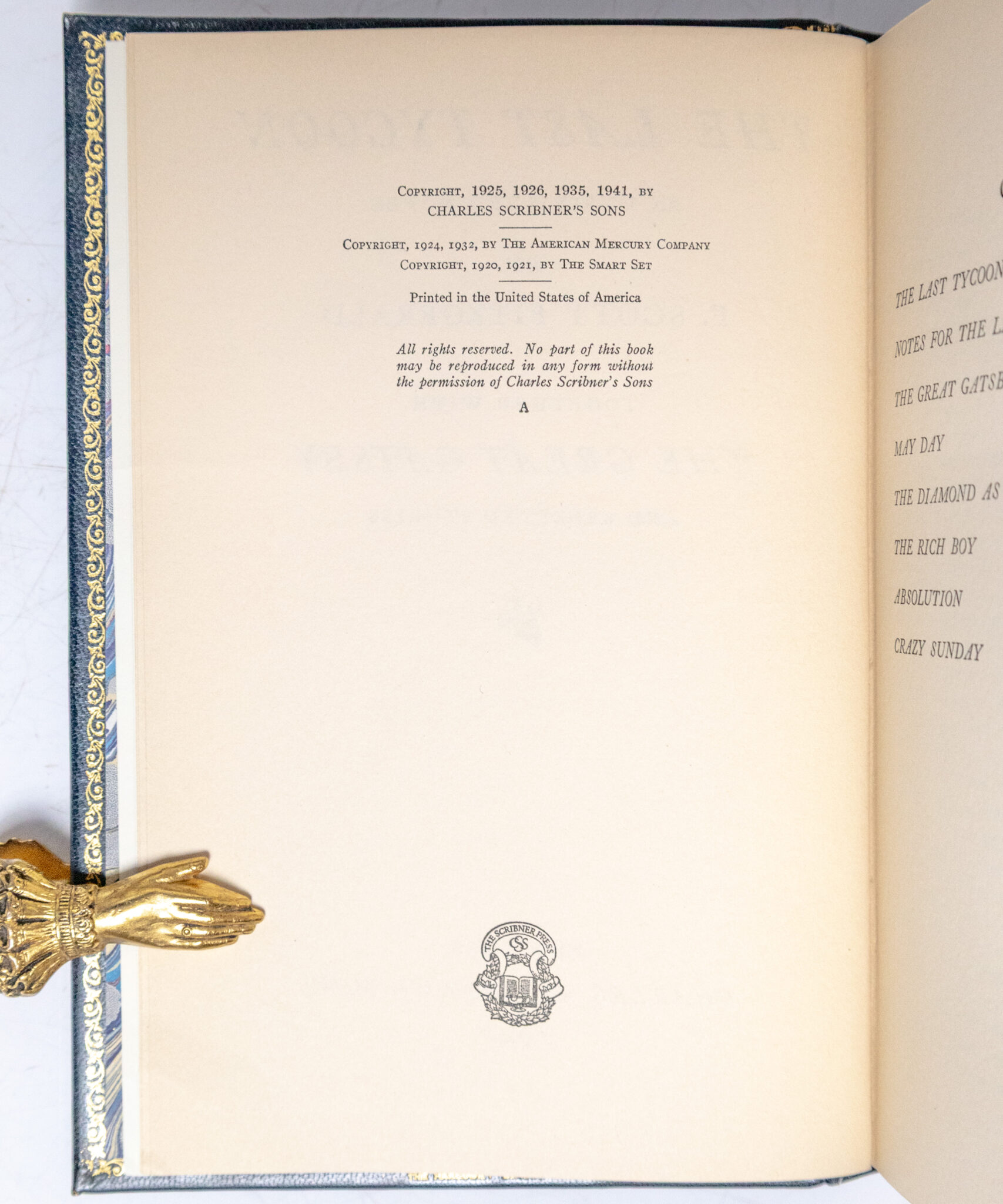 First Edition of F. Scott Fitzgerald's The Last Tycoon; Finely Bound by The Harcourt Bindery