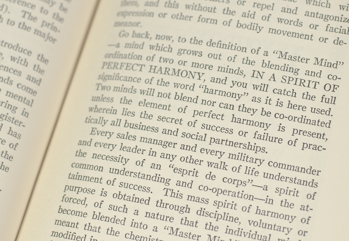According to Hill, the work was commissioned at the request of Andrew Carnegie, at the conclusion of a multi-day interview with Hill. It was allegedly based upon interviews with over 100 American millionaires, including self-made industrial giants such as Henry Ford, J. P. Morgan, John D. Rockefeller, Alexander Graham Bell and Thomas Edison, across nearly 20 years. The Law of Success was first presented as a lecture, and was delivered by its author in many major cities and in many smaller localities throughout the United States over a period of more than seven years. The Inc magazine included this among the "14 Great Books for Anyone Who Wants Get Ahead in Life." The "Master Mind" concept introduced in the first chapter of this first book is regarded to be the key behind Hill's system by some authors. A Mastermind group is specified as a peer-to-peer mentoring group to help members solve their problems with input from the other group members.
