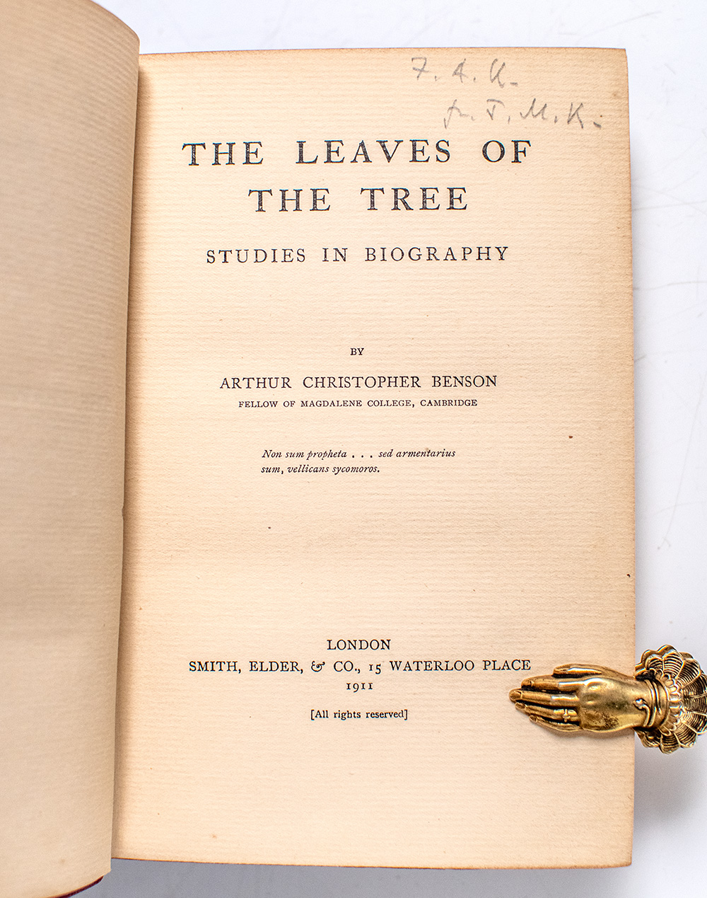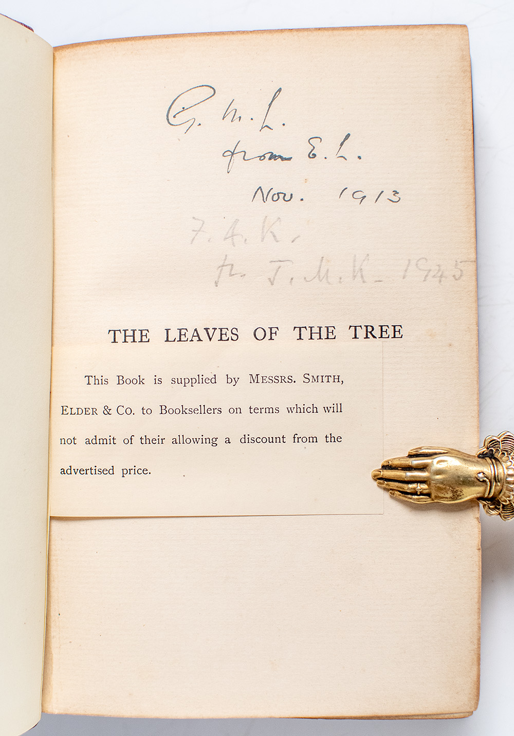 First Edition of Arthur Christopher Benson's The Leaves of the Tree; inscribed twice by economist John Maynard Keynes to his mother
