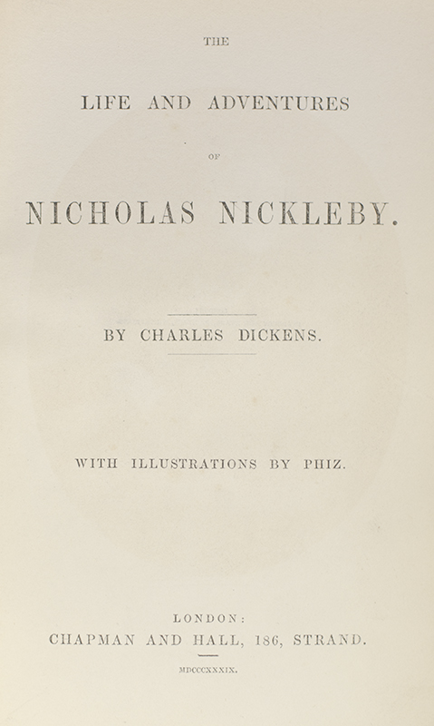 The Life and Adventures of Nicholas Nickleby.