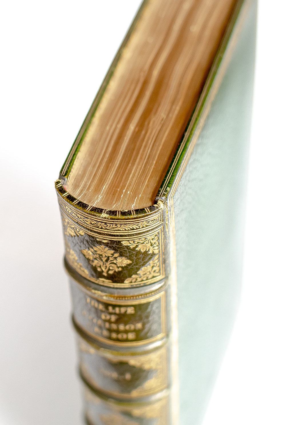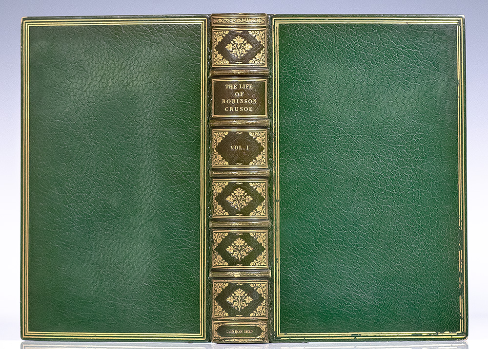 Finely bound example of Thomas Stothard’s beautifully illustrated edition of Defoe’s classic tale of adventure. Royal octavo, two volumes bound in full crushed levant emerald green morocco by Chambolle-Duru with gilt titles and tooling to the spine in six compartments within raised gilt bands, triple gilt ruling to the front and rear panels, gilt turn-ins and inner dentelles stamp-signed by Chambolle-Duru, marbled endpapers, top edge gilt, ribbon bound in, illustrated with engraved frontispieces, vignette title pages and 22 full-page illustrations by Thomas Stothard. Provenance: armorial bookplate of M.C.D. Borden to the pastedown of each volume. In very good condition. A very nice example.