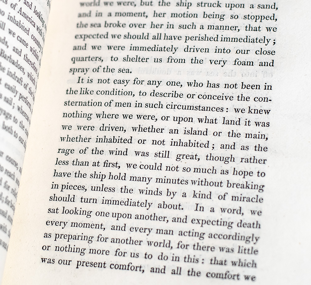 "Robinson Crusoe is the most popular, delightful, and extraordinary of all Defoe's Works, and has lost none of its original attraction. Dr. Johnson observed, `nobody ever laid it down without wishing it were longer'" (Lowndes, 613-14). “Stockdale’s edition was an important contribution to the life of Defoe’s book. The handsome set restored the Crusoe text, which, by 1790, had been much abused. Thomas Stothard[’s]… extensive and beautiful illustrations made Stockdale’s the first edition so finely decorated” (Lovett 89). “Stothard was the first English artist to realize the visual potential of Robinson Crusoe." As opposed to previous illustrators of the text, “Stothard depicts Crusoe not as a sinful or isolated figure, but as a social man who leaves his family with regret and who rejoices in his companionship with Friday and, later, with the Spanish lieutenant. Rather than fear, he emphasizes contentment, harmony and the nobility of man… His designs set an idealistic and romantic standard that subsequent artists aspired to equal” (Picturing the First Castaway, Rutgers University).