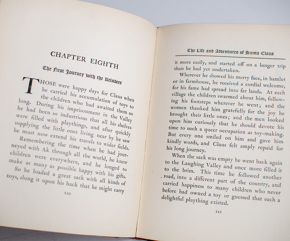 "And he slung the pack of toys over his shoulder and got into the chimney: First edition of The Life and Adventures of Santa Claus; inscribed by L. Frank Baum to the illustrator of The Wonderful Wizard of Oz, William Wallace Denslow