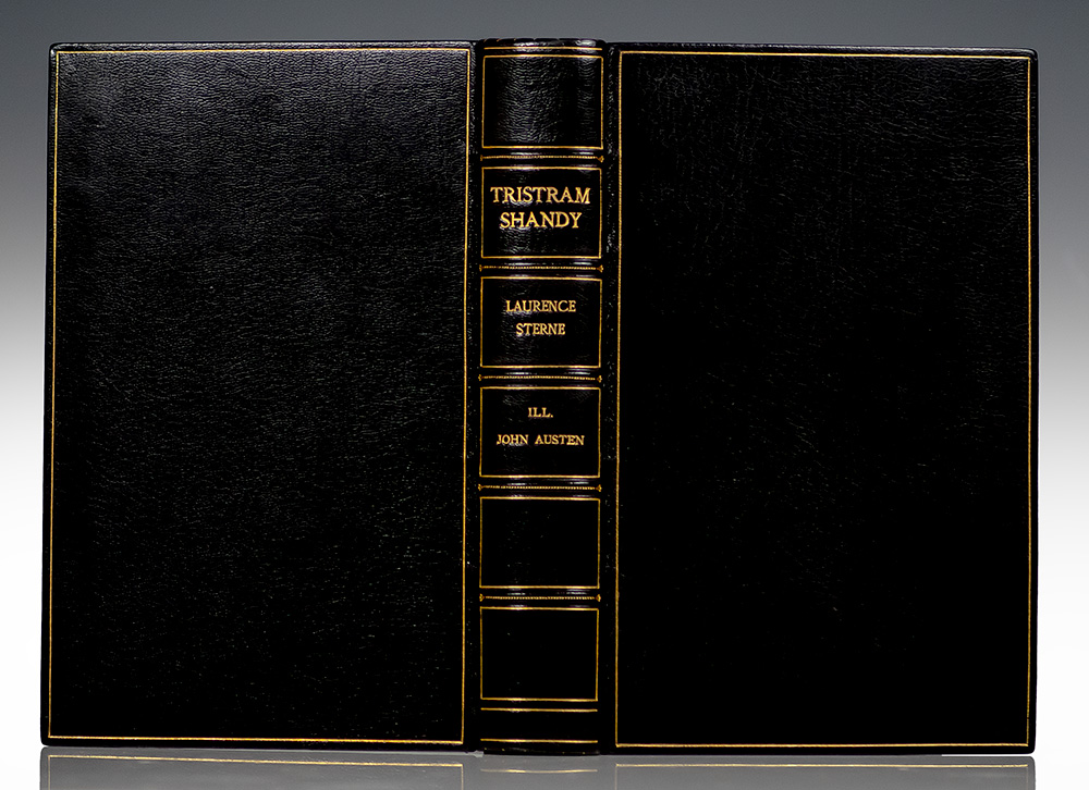 Tristram Shandy is considered by many the first modern novel and Sterne the father of stream of consciousness writing. It is perhaps the most literal example of a novel available. Sterne was an Anglican Vicar who was influenced by Pope, Locke, Swift and Cervantes. His narrative devices and styles have indelibly influenced many modern and postmodern authors: James Joyce, Virginia Woolf, Milan Kundera, Salmon Rushdie among others. "[Sterne] remains, as the author of Tristram Shandy, a delineator of the comedy of human life before whom only three or four humorous writers, in any tongue or of any age, can justly claim precedence… he deserves many of the honors that have been paid to Pope and Swift" (DNB). Tristram Shandy's huge popular success made Sterne the toast of the London literary world. When some volumes were pirated, Sterne began signing some genuine editions of his work. This set is signed by Sterne at the head of the opening chapter