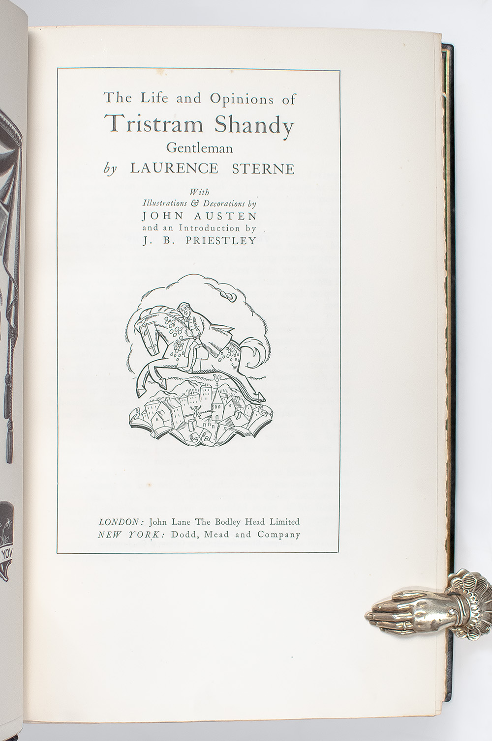 The Bodley Head Limited edition of one of the greatest comic novels in the English language. Royal octavo, bound in full morocco by Sangorski & Sutcliffe with gilt titles to the spine in six compartments within raised gilt bands, top edge gilt, gilt turn-ins and inner dentelles, marbled endpapers, frontispiece, with black and white illustrations throughout. In fine condition. Illustrations and decorations by John Austen. Introduction by J.B. Priestley. A beautiful example of this landmark 18th-century English novel.