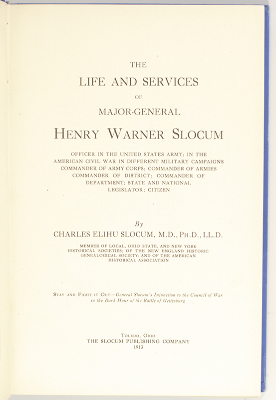 First Edition of Charles Elihu Slocum's The Life and Services of Major-General Henry Warner Slocum