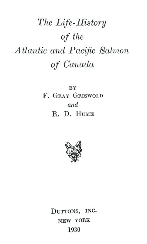 "What is good for the fish is good for the fisherman": First edition of Griswold and Hume's The Life-History of the Atlantic and Pacific Salmon of Canada
