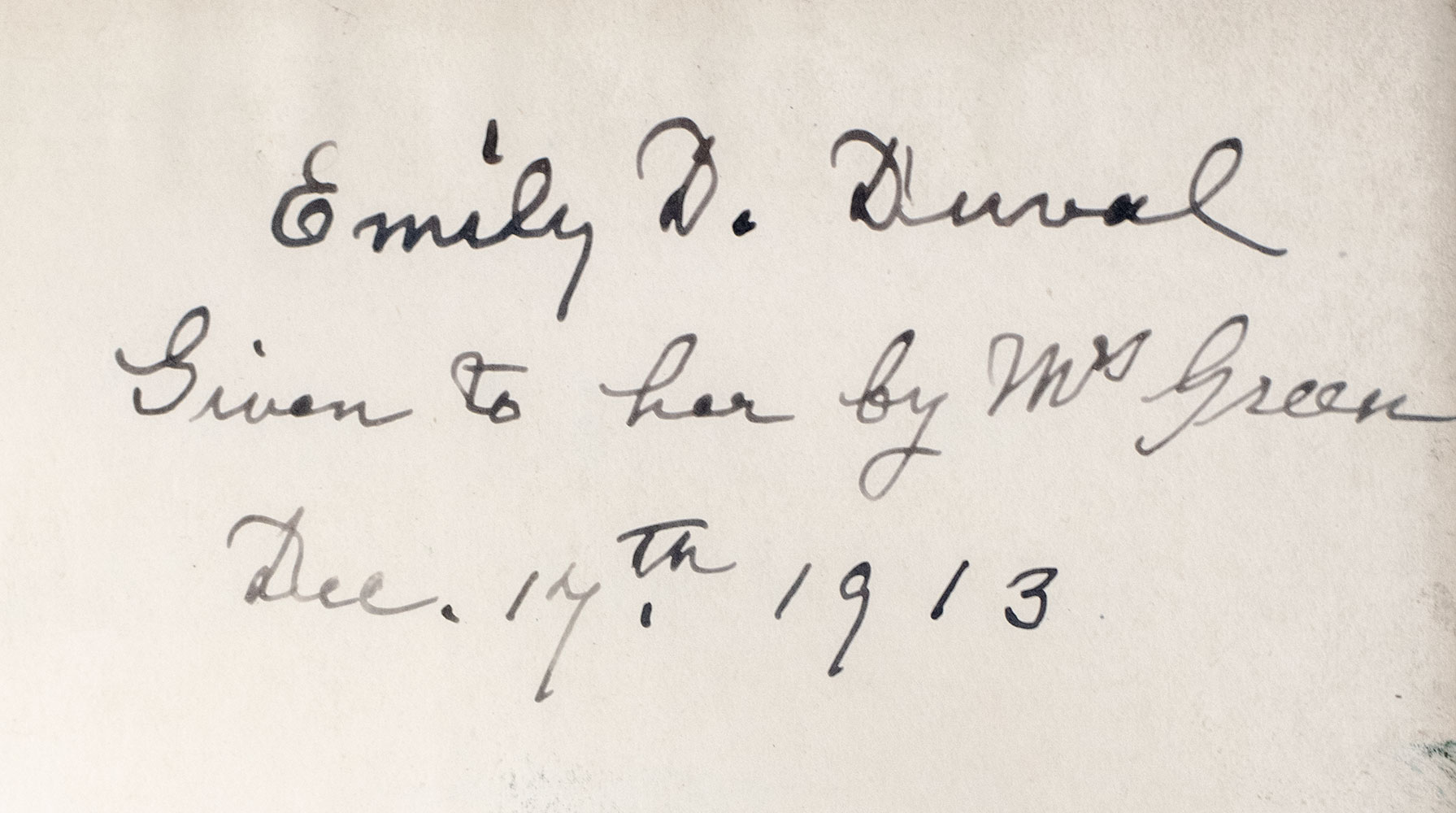 First edition of Gertrude Colmore's brief biography of Emily Wilding Davison. Octavo, original publisher's wrappers, frontispiece portrait of Davison. Association copy, from the library of fellow English suffragette Emily Duval with her ownership inscription, "Emily D. Duvall Given to her by Mrs. Green Dec. 17th 1913." Like Davison, Emily Duval was a militant petitioner in the fight for women's voting rights and was imprisoned several times. Publishing as Gertrude Colmore, English writer and suffragist Gertrude Baillie-Weaver was active when the suffragettes were most militant. In 1911, she published her best-known work, Suffragette Sally, which furthered the cause of the women’s movement by gaining empathy from its readers. In near fine condition. Rare with three copies traced in auction records.