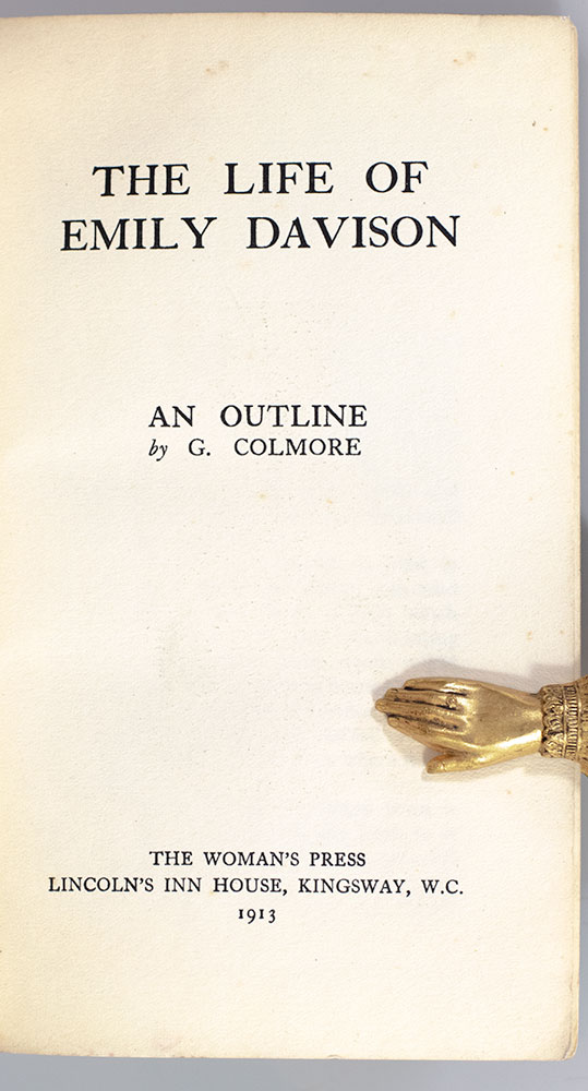 "Linking three militant English suffragettes": First edition of Gertrude Baillie-Weaver's The Life of Emily Davison; from the collection of Emily Duval with her ownership inscription