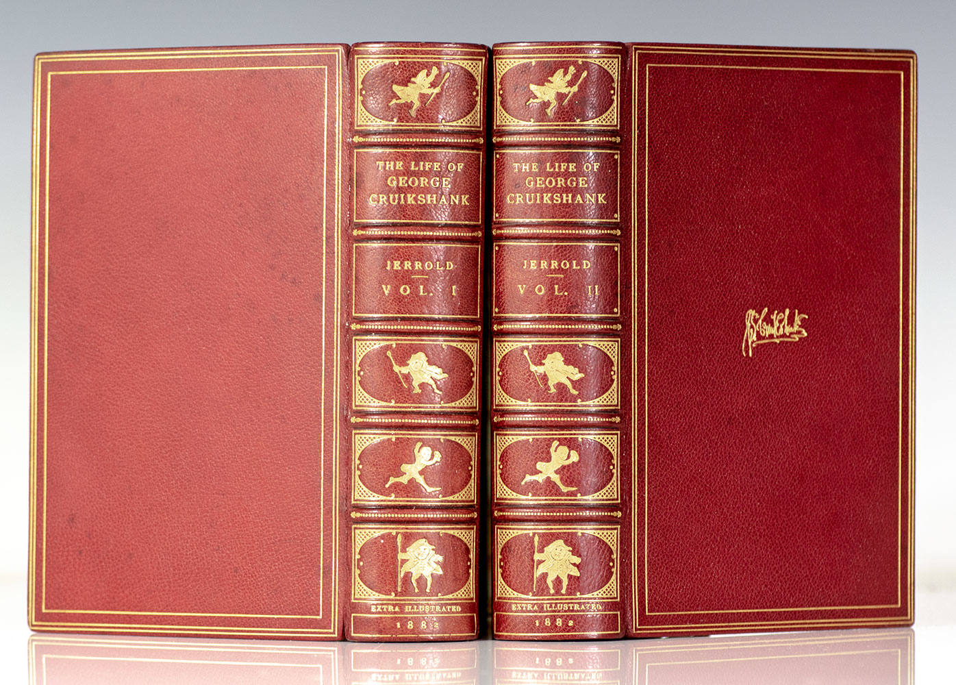 First edition of Blanchard Jerrold's The Life of George Cruikshank; bound in full crushed levant morocco by Sangorski & Sutcliffe