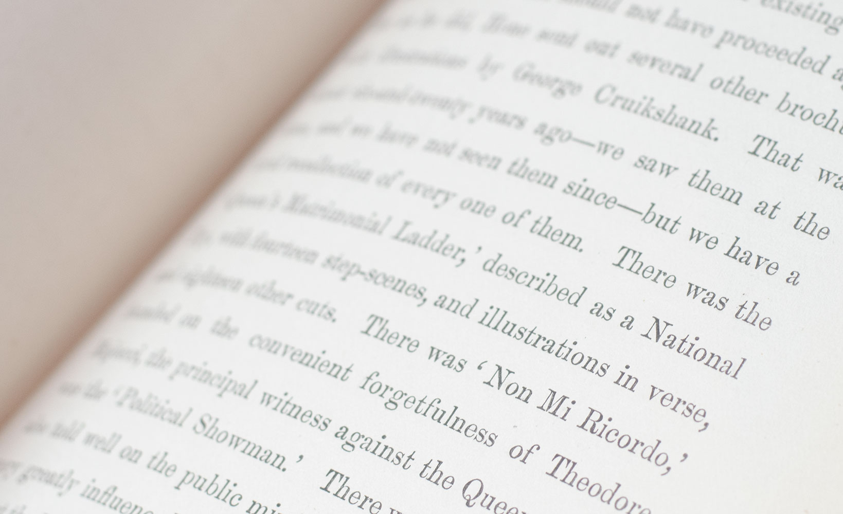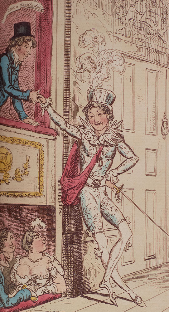 Praised as the "modern Hogarth" during his lifetime, British caricaturist and book illustrator George Cruikshank was, for a time, England's most popular satirist. He illustrated numerous works for close friend Charles Dickens including Sketches by Boz (1836), The Mudfog Papers (1837–38) and Oliver Twist (1838). Cruikshank's early work was caricature; but in 1823, at the age of 31, he started to focus on book illustration. He illustrated the first, 1823 English translation (by Edgar Taylor and David Jardine) of Grimms' Fairy Tales, published in two volumes as German Popular Stories