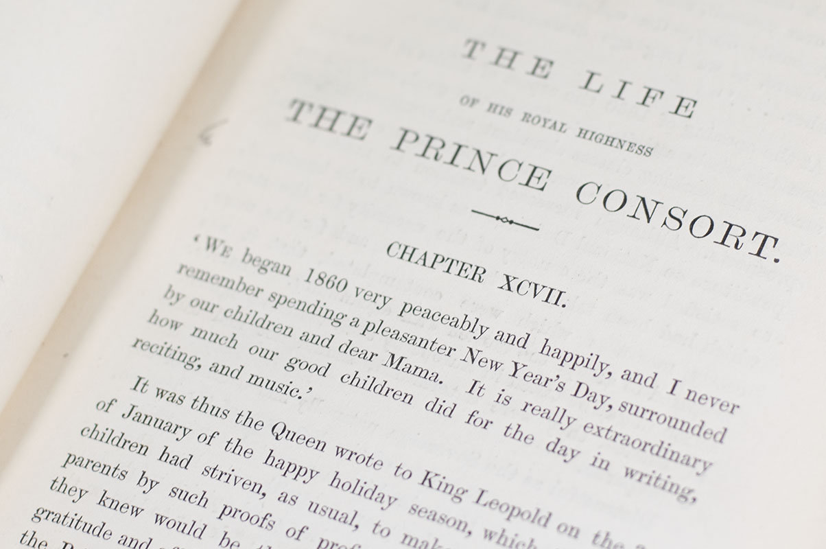 This extensive biography of Prince Albert (1819-1861) was begun in 1866 and was originally intended to be a continuation of the unpublished work The Early Years of the Prince Consort by Queen Victoria's private secretary Charles Grey. The queen interviewed Martin on 14 November 1866 and, finding him "very pleasing, clever, quiet, and sympathetic", engaged him to write the biography. Queen Victoria selected the documents for use and intervened widely in the manuscript. Martin "became one of the queen's confidential, if unofficial, servants" (ODNB).