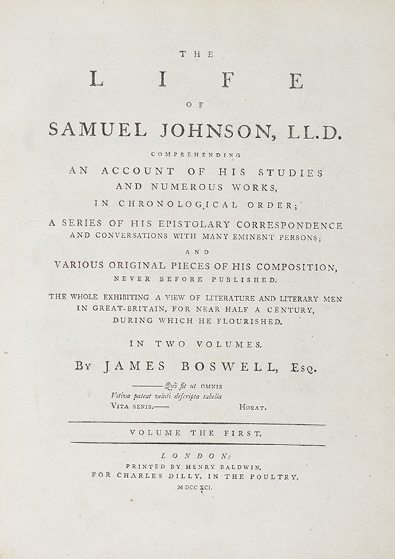 "the most celebrated biography in the English language": Rare First Edition, First Issue of Boswell's The Life of Johnson
