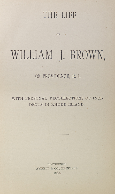 Rare First Edition of The Life of William J. Brown, of Providence, R. I. With Personal Recollections of Incidents in Rhode Island