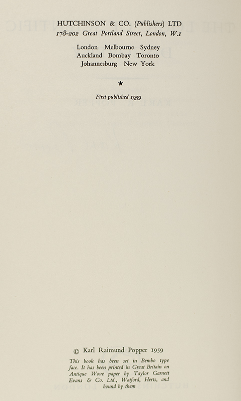 First Edition of Karl Popper's The Logic of Scientific Discovery; Signed by Him