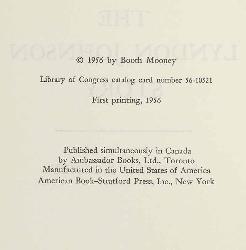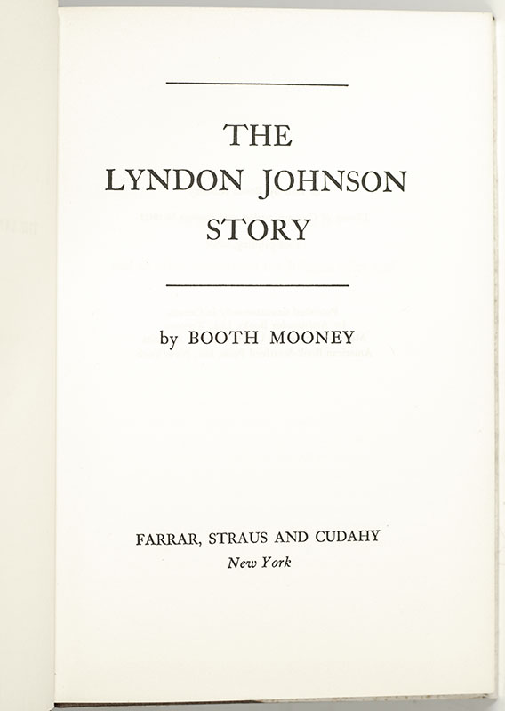 "With gratitude and admiration from his friend": First Edition of Booth Mooney's The Lyndon Johnson Story; lengthily inscribed by Lyndon B. Johnson