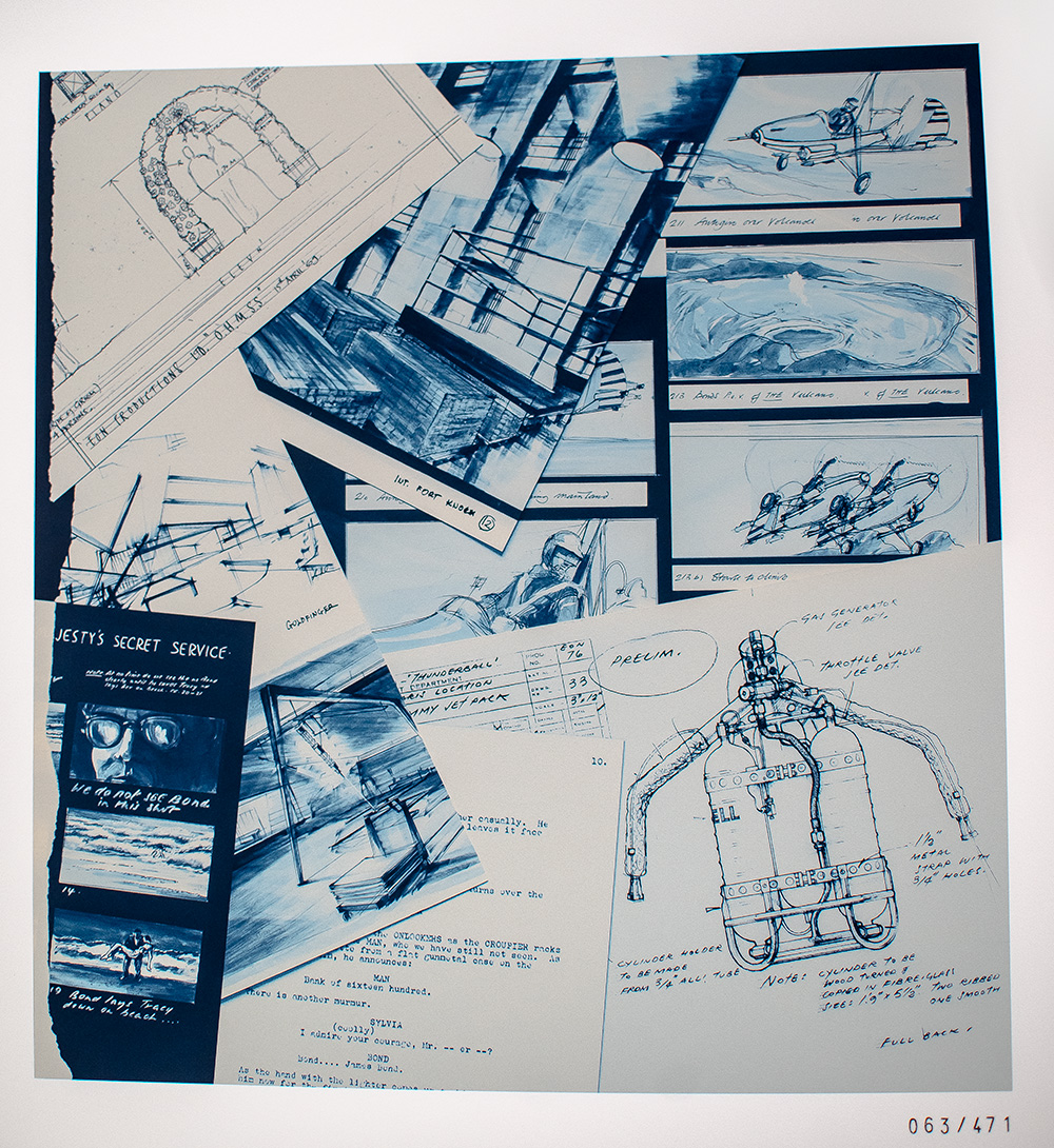Limited edition 60th anniversary Giclée print collection marking the six decades of James Bond films with a collaboration between The Macallan and EON Productions. Square folio, pictorial boards, six tissue-guarded archival pigment prints on 300gsm smooth fine art paper made of 100 percent cotton each depicting a decade of James Bond. One of 471 numbered editions, this is number 63. In fine condition. Housed in a custom The Macallan x 007 box. The pieces measure 14 inches by 15 inches.