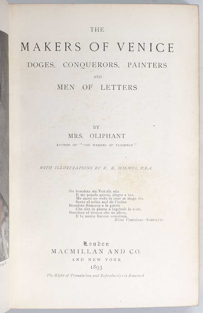 Margaret Oliphant's The Makers of Venice: Doges, Conquerors, Painters and Men of Letters; decorated with a concealed fore-edge painting