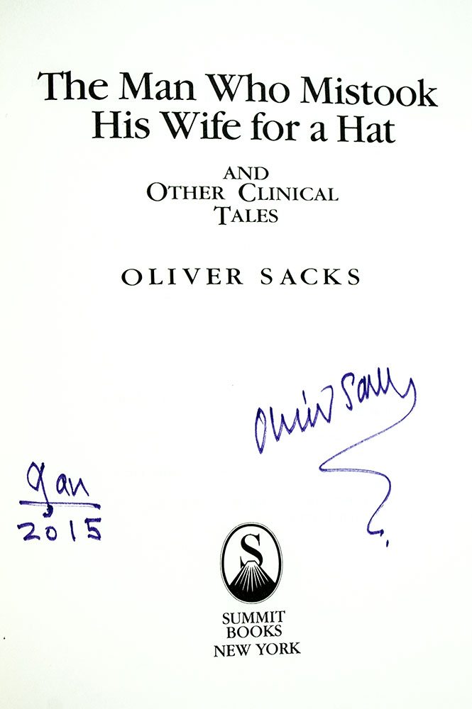 “If a man has lost a leg or an eye, he knows he has lost a leg or an eye; but if he has lost a self—himself—he cannot know it, because he is no longer there to know it": First Edition of The Man Who Mistook His Wife For A Hat; Signed by Oliver Sacks