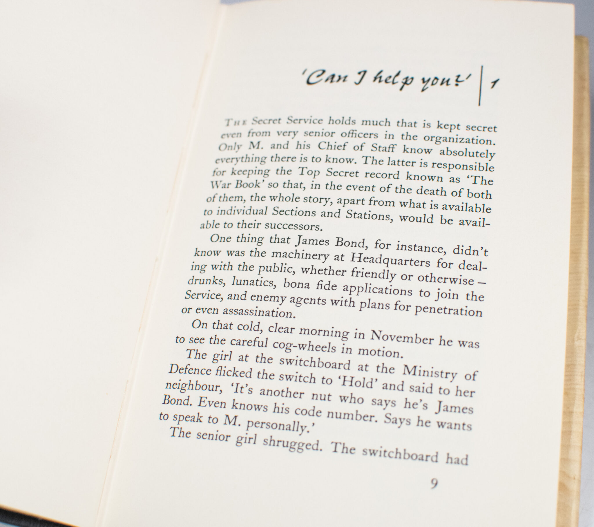First edition of the twelfth novel of Ian Fleming's James Bond series. Octavo, original black cloth, green patterned endpapers. Near fine in a very good dust jacket. Jacket design by Richard Chopping.