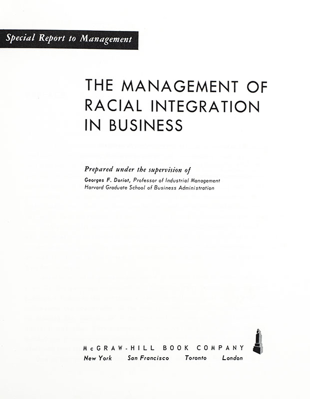 "The Father of Venture Capitalism": Rare First Edition of George Doirot's The Management of Racial Integration in Business