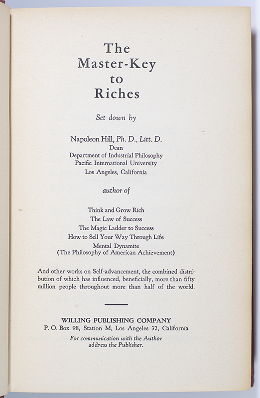 First Edition of Napoleon Hill's The Master Key to Riches; Signed by Him