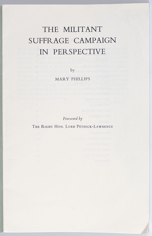 Rare first edition of Mary Phillips' The Militant Suffrage Campaign in Perspective