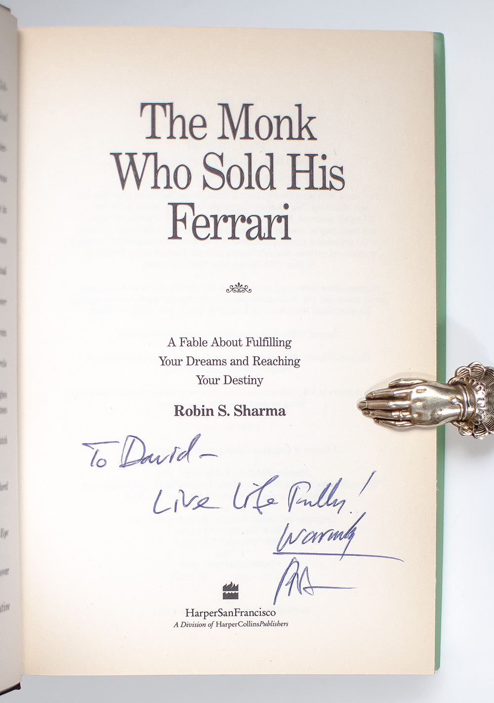 First Edition of The Monk Who Sold His Ferrari: A Fable About Fulfilling Your Dreams & Reaching Your Destiny; Warmly Inscribed by Robin Sharma