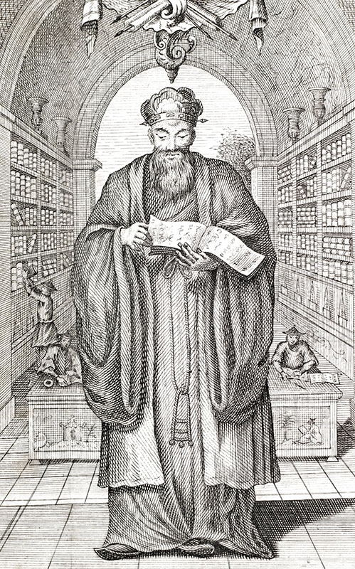"[B]asically a translation of Le Morale de Confucius, philosophe de la Chine" (Savouret, 1688), The Morals of Confucius was "translated and abridged from the Latin translation of Prospero Intorcetta, Philippe Couplet, and others, or from an intervening French translation attributed to Louis Cousin or Jean de La Brune" (ESTC, T140229). Chinese philosopher Confucius’s principles had a commonality with earlier Chinese tradition with an emphasis on personal and governmental morality, ancestral veneration, respect for one’s elders, and strong family loyalty. His teachings left a legacy of disciples and gained widespread prominence under the Han and Tang Dynasties, became the official imperial philosophy of China after his death in 479 B.C.E., and remained the dominant philosophy in China until the early 20th century. Likely compiled and composed by his disciples after Confucius's death, the Analects, or Maxims, grew to be one of the central texts of Confucianism by the end of the Han Dynasty.